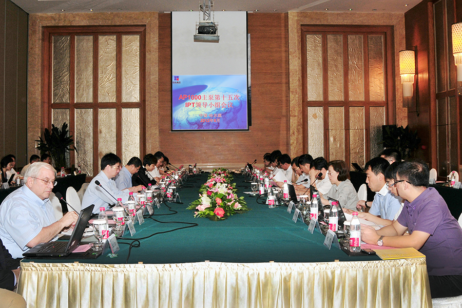 8月14日、16日, 由公司承办的AP1000主泵高层管理IPT(三代核电AP1000主泵联合项目管理组织)第6次会议暨AP1000 主泵IPT领导小组第15次会议在哈尔滨举行。国家核电技术公司党组书记、董事长王炳华出席会议并讲话。国家核电技术公司副总经理曲大庄主持会议。国家核电技术公司专家委副主任孙昌基,国核工程公司总经理孙文科,上海核工院副所长邱健,美国西屋电气公司亚洲区总裁 Jack·Allen,柯蒂斯·怀特流体技术公司北京办副总裁James·Denne,沈阳鼓风机集团核电泵业有限公司董事长孔跃龙、总经理于洪昌,以及哈电集团董事长、党委书记宫晶堃,公司总经理吴伟章、副总经理韩建伟等领导出席会议。